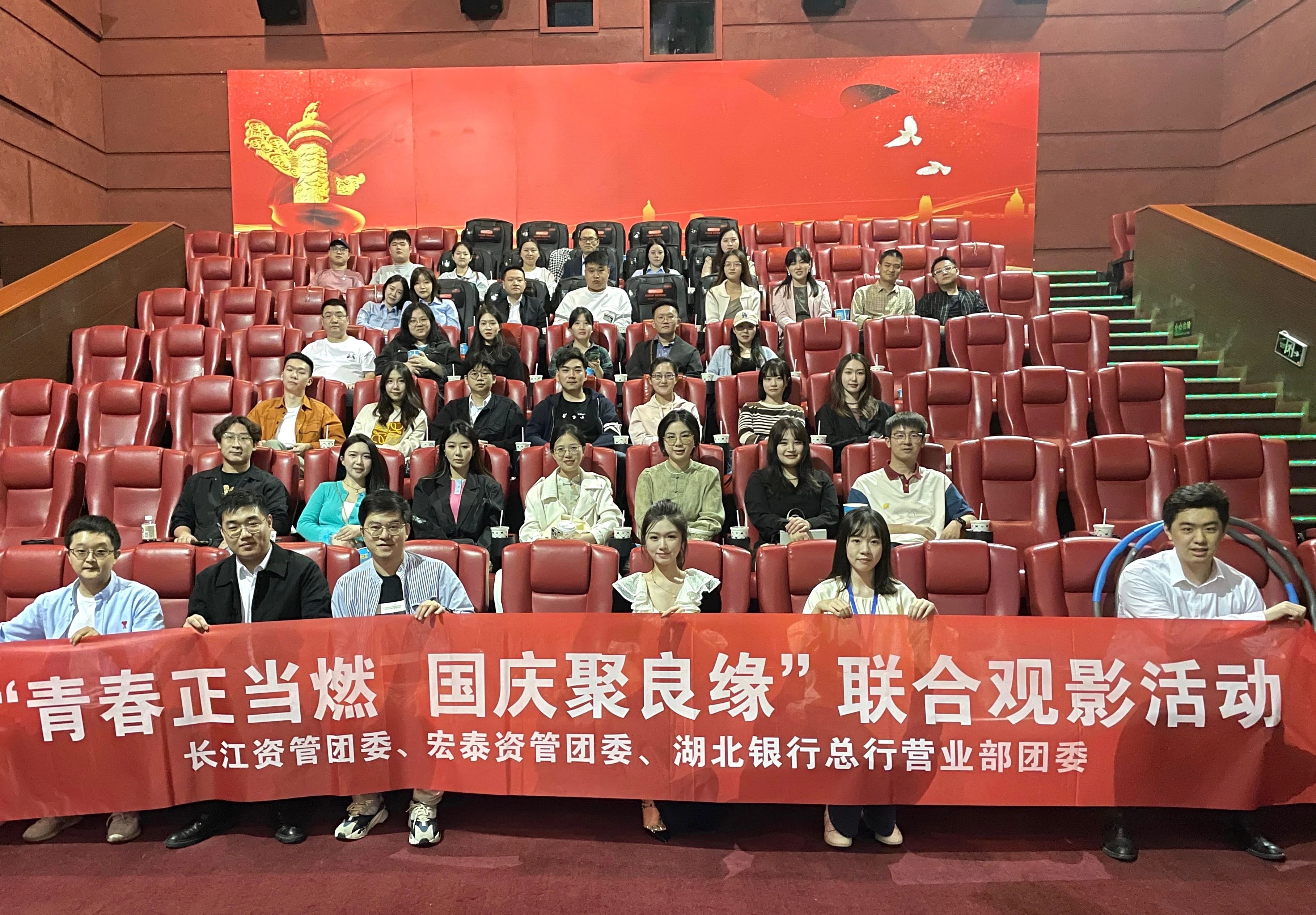 为庆祝中华人民共和国成立74周年,认真贯彻习近平总书记关于青年工作重要思想,充分发挥团组织凝聚青年、服务青年的桥梁纽带作用,进一步激发青年员工爱国主义情怀,10月13日,长江资管、湖北资管、湖北银行营业部团委联合开展了“青春正当燃 国庆聚良缘”主题观影联谊活动,各单位青年员工代表40余人参加了此次活动。