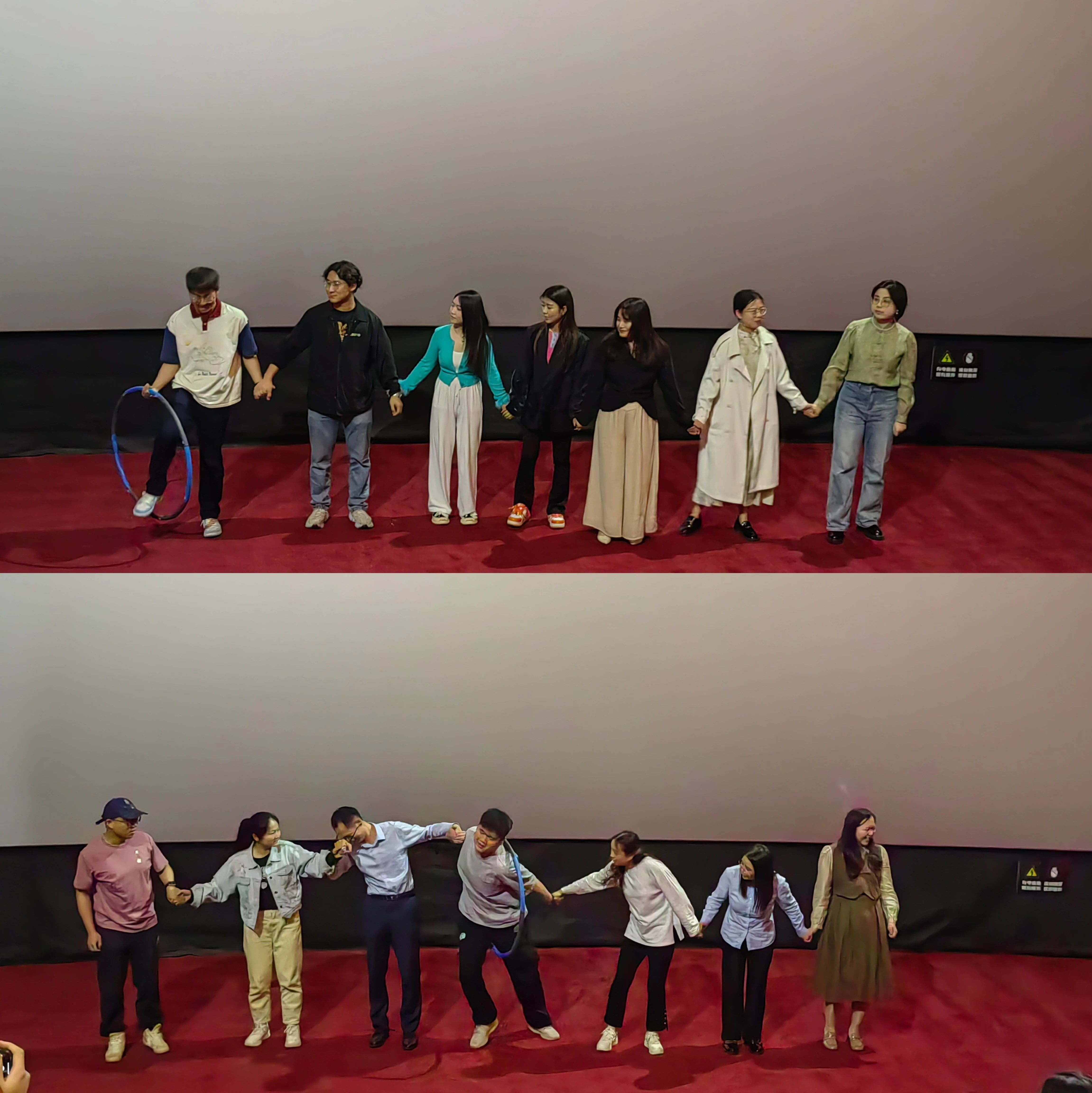观影活动开始前,团委工作组精心设计准备了“一圈到底”“姓名接龙”等趣味破冰小游戏互动环节,现场40余名青年分为5个小组,在主持人的引导下进入游戏中,通过互动游戏,青年彼此增进了信任、减少了陌生、缩短了距离,活动现场洋溢着轻松愉悦、热闹非凡的氛围。