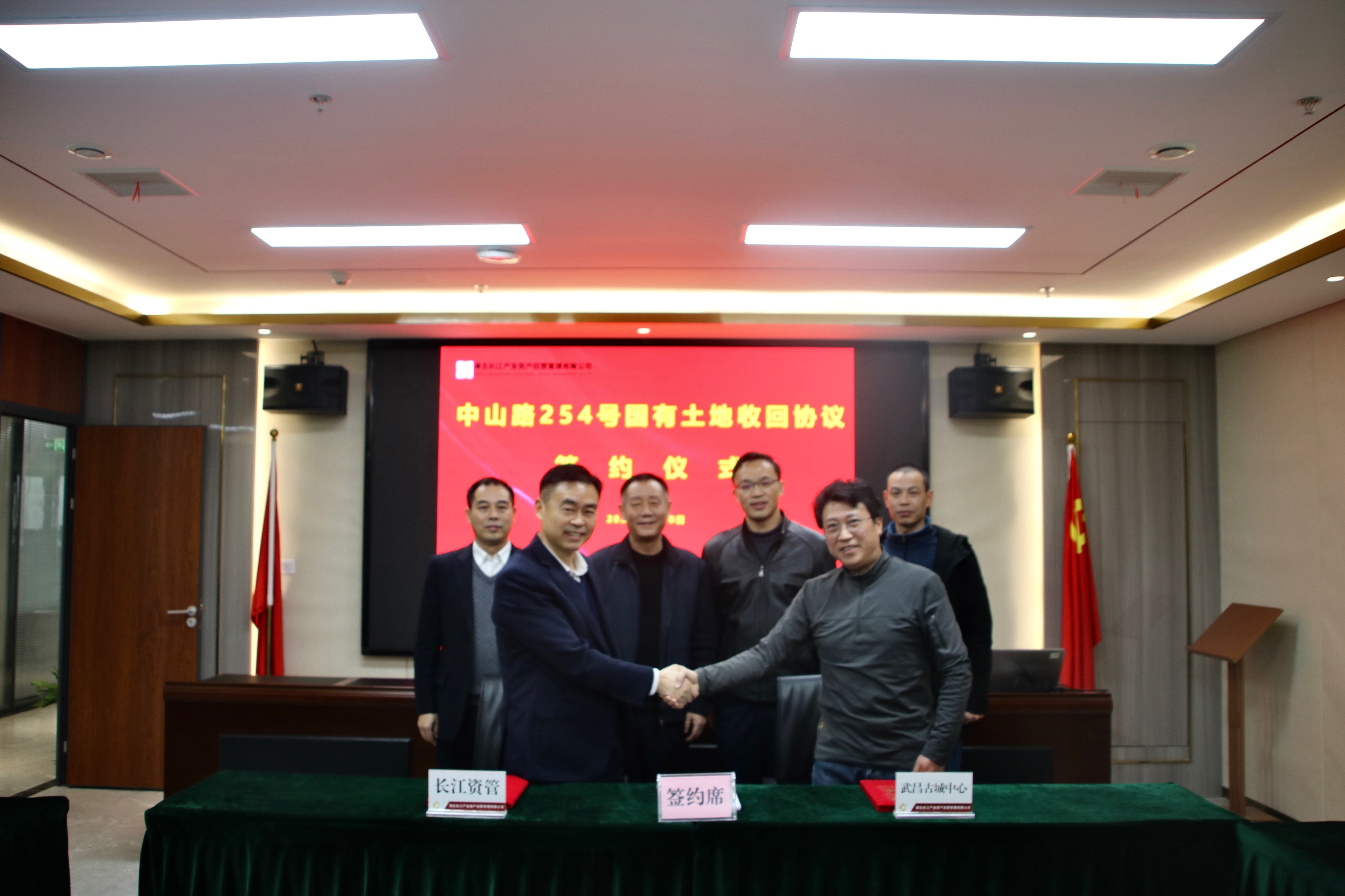 1月10日,长江资管公司与武汉市武昌区武昌古城保护发展中心(以下简称武昌古城中心)举行中山路254号国有土地收回事宜签约仪式。公司党委书记、董事长曾浩,武昌古城中心党组书记、主任柯越出席签约仪式。公司党委副书记、总经理詹彬与武昌古城中心党组成员、副主任肖海代表双方签署了协议。签约仪式后,长江资管公司邀请武昌古城中心一行前往公司位于武昌古城范围内的多处资产实地考察,共话未来。