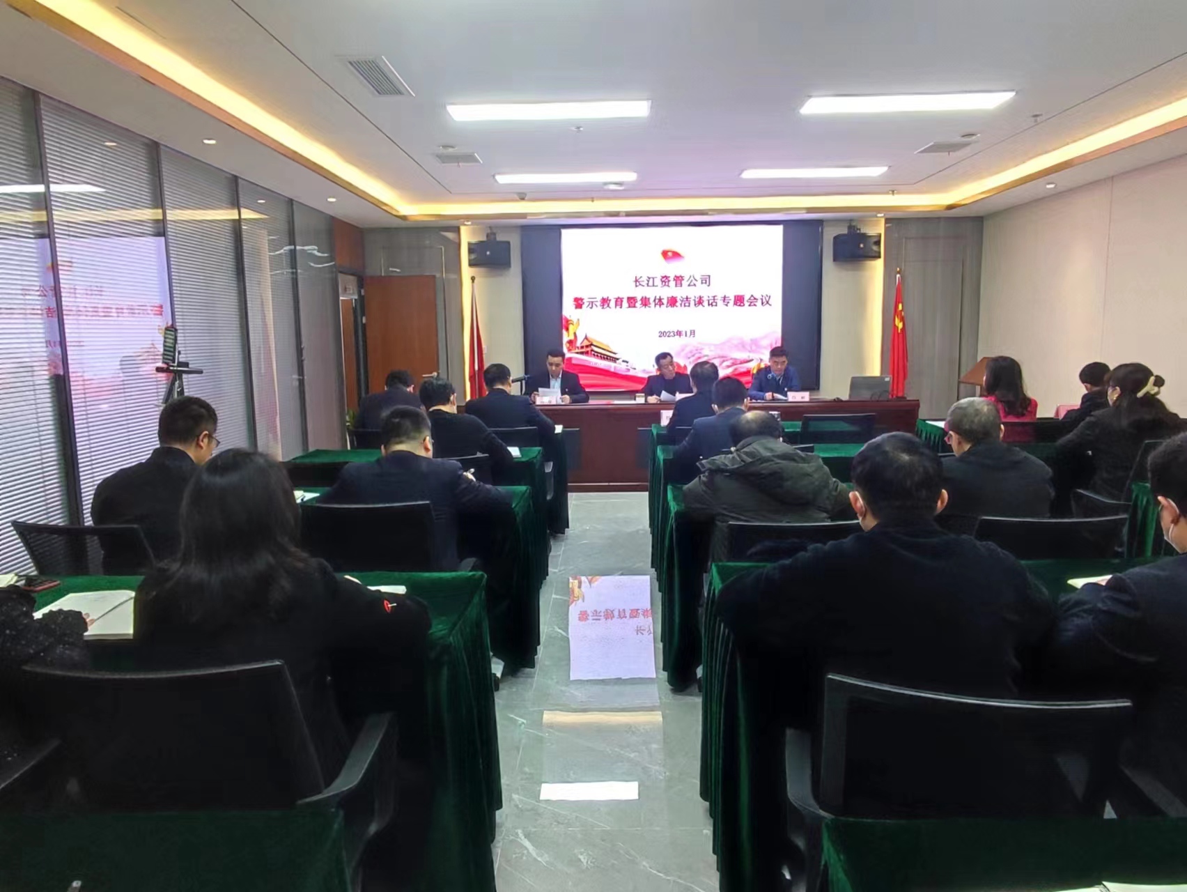 为深入学习贯彻党的二十大精神,持之以恒推进全面从严治党,在新春佳节来临之际,长江资管公司于1月13日下午召开干部职工警示教育大会暨集体廉洁谈话专题会议。公司党委书记、董事长曾浩对公司领导班子成员、本部员工和所属企业经营管理人员开展了集体廉洁谈话。会议以现场+视频形式召开,由党委副书记、总经理詹彬主持。
