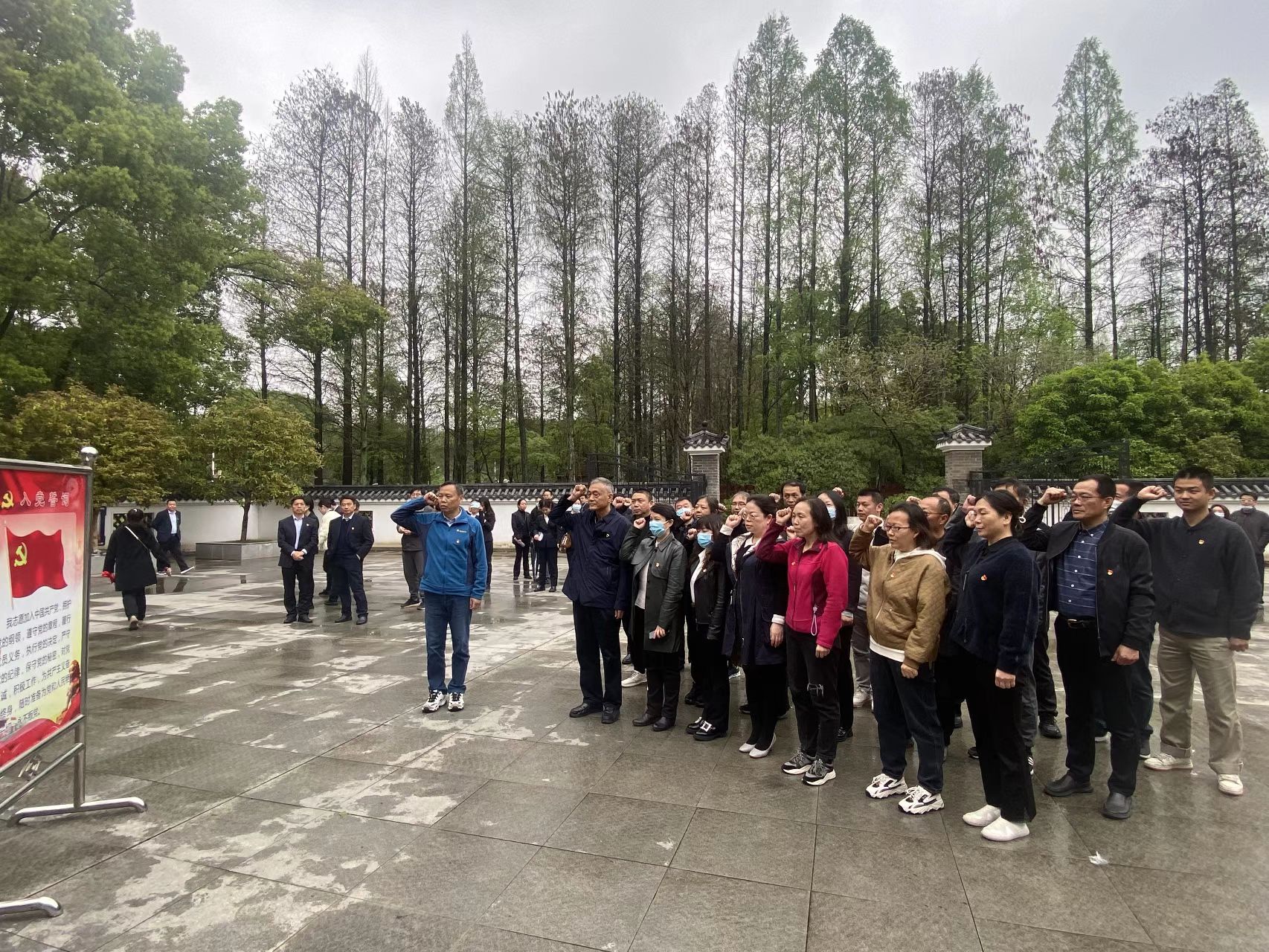 在革命烈士纪念馆,全体党员在党旗前重温入党誓词,并参观了各个革命历史时期的图片和文字介绍,通过览照片、观实物、看录像,对发生在这片红色土地上可歌可泣的英雄故事有了更加深刻的了解,起到了洗礼心灵、淬炼党性的效果。
